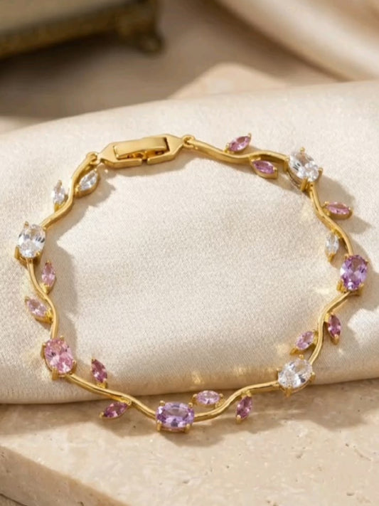 Pink & Lavender Viral Tulip CZ Gold Bracelet – Anti Tarnish Stainless Steel