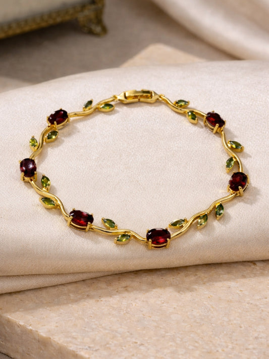 Brown & Green Tulip CZ Gold Bracelet – Anti Tarnish Stainless Steel