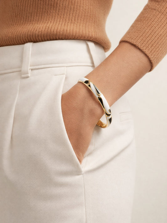 White & Black Enamel CZ Gold Plated Designer Bangle for Women