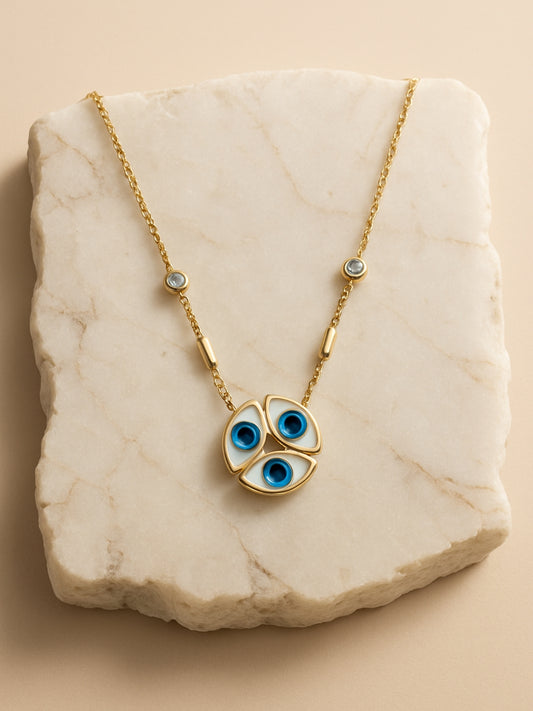 3 Evil Eye Pendant Necklace in 18kt Gold | Anti-Tarnish, Everyday Wear