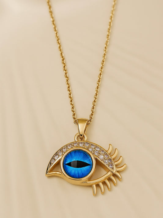 Bold Blue Evil Eye Pendant Neckpiece in 14K Gold – Anti Tarnish