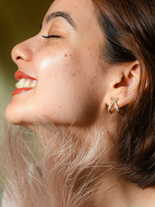 18K Gold Studded Big Criss Cross Hoops – Anti-Tarnish, Water Resistant