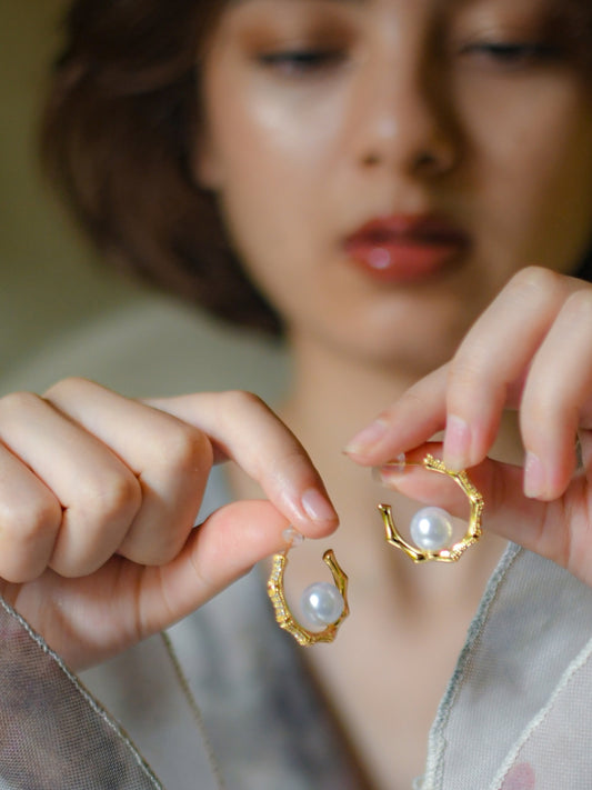 18K Gold Hexagon Pearl Hoops – Anti-Tarnish, Water Resistant