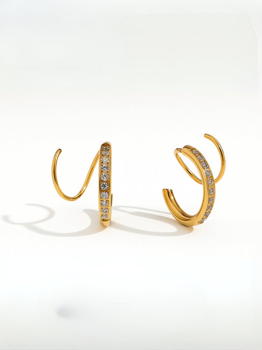 18K Gold Twist CZ Hoop Earrings | Double Piercing Look in One