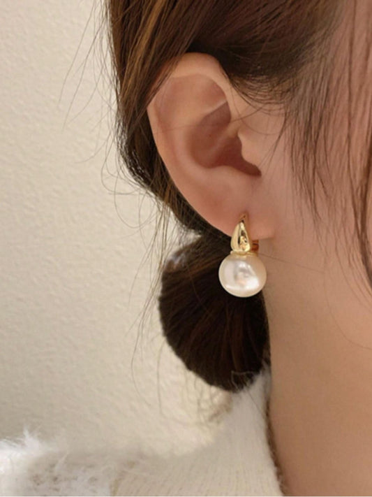 Gold Plated Pearl Huggie Hoop Earrings – Fashion Jewelry