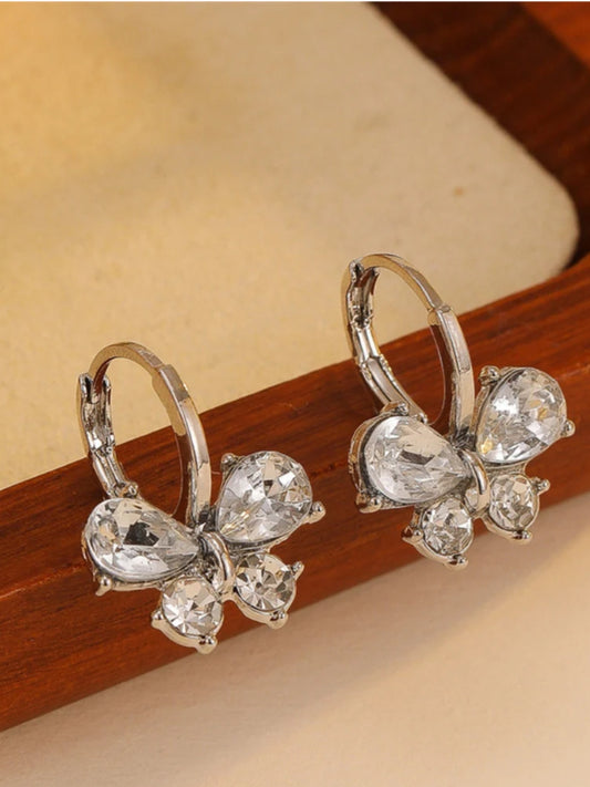 Gold Butterfly CZ Hoops | Sparkling Crystal Butterfly Earrings