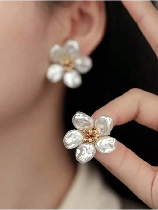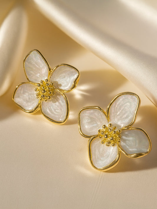 White MOP Flower Stud Earrings for Women - Gold Plated Fashion Jewelry