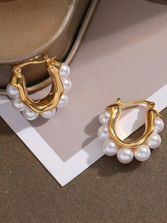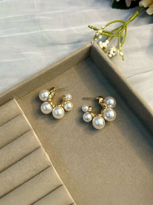 Elegant Gold Plated Pearl Half Hoop Earrings for Women