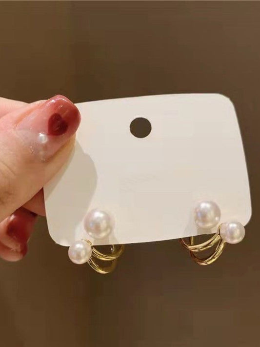 Gold Pearl Hugging Stud Earrings – Elegant Double Pearl Hoops