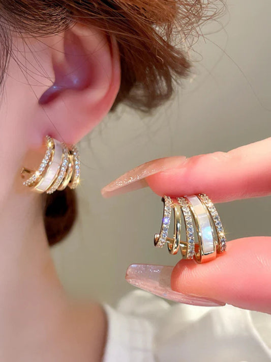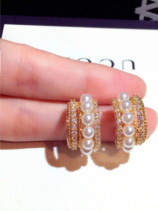 Gold Pearl & CZ Multi-Line Stud Earrings | Elegant Fashion Jewelry