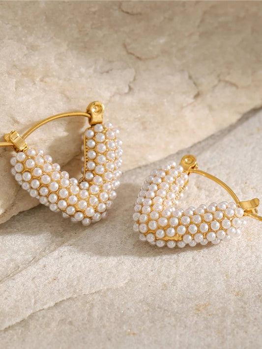 Gold Pearl Heart Hoop Earrings – Trendy Fashion Jewelry