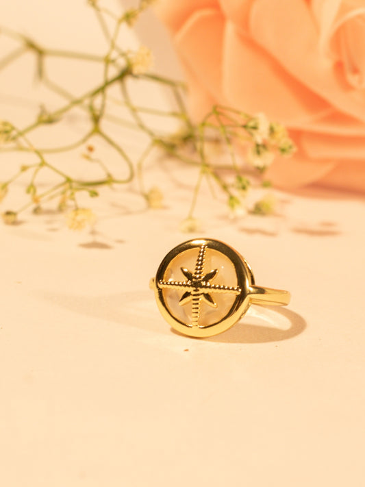 Adjustable MOP Star Ring in 14K Gold Plated Stainless Steel