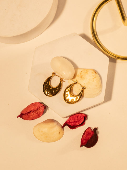 Handbeaten U-Shaped Gold Hoop Earrings – Stainless Steel, Lightweight, 3 cm