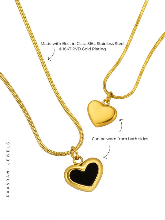 Black Mini Heart Gold Pendant Necklace – 18K Gold Plated, Onyx Charm