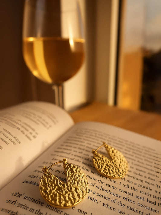 Circular Hand beaten Gold Hoop Earrings – Stainless Steel, Lightweight, 4 cm