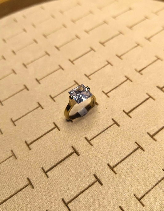 Classic Square Solitaire Ring – (Anti-Tarnish Gold)