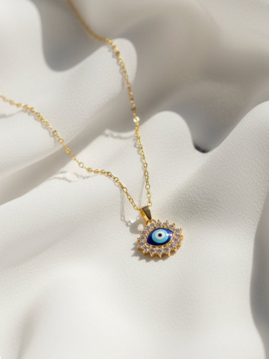 Anti-Tarnish Evil Eye Pendant Necklace in 18K Gold | CZ Protection Chain