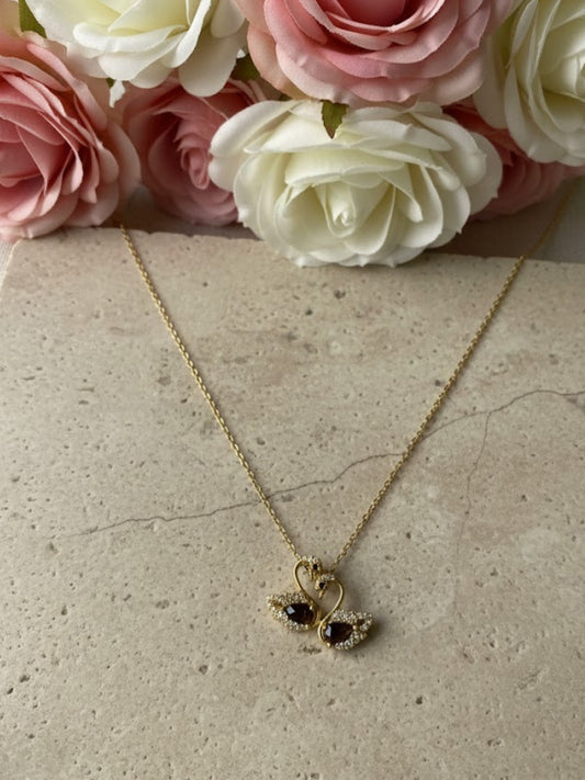 Twin Swan Pendant Necklace in 18K Gold | CZ Love Neckpiece