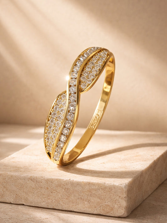 18K Gold Plated CZ Wave Open Bracelet – Anti Tarnish Bangle