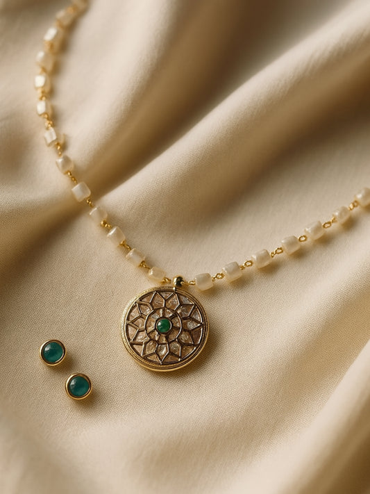 Round Kundan Pearl Necklace Set with Stud Earrings – Gold Plated Jewelry