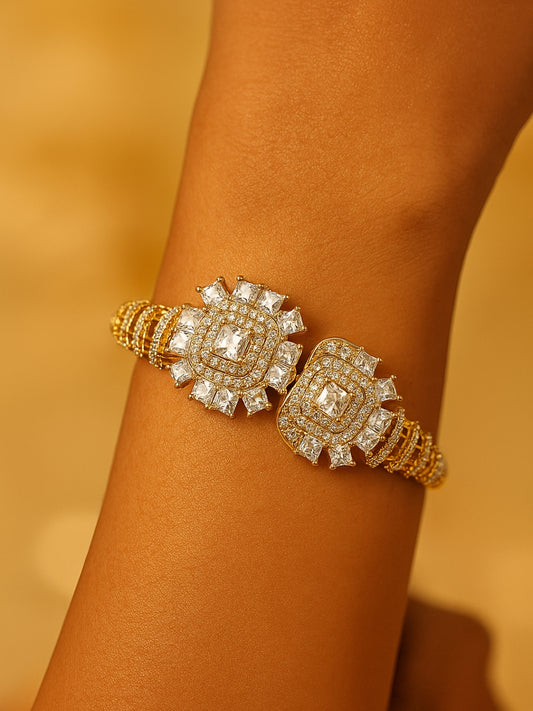 Aurora Dual-Stone Cuff – Rose Gold | Big & Small AD Studded | 2'4–2'6 Fit