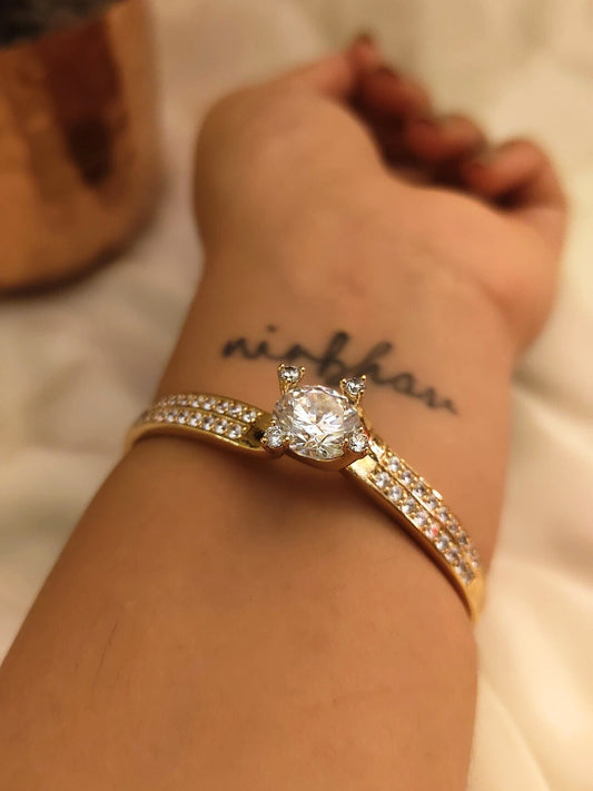 Solitaire Style RoseGold Cuff – 316L Stainless Steel, AD Stones, for Small Wrists