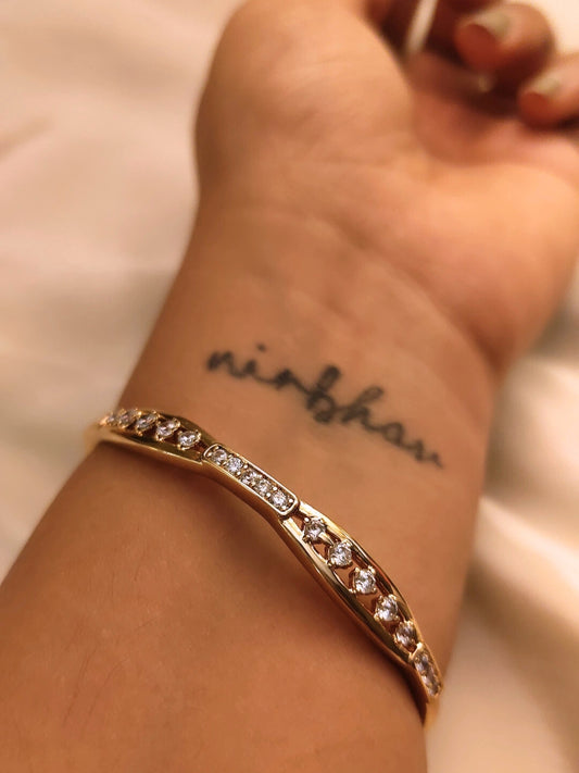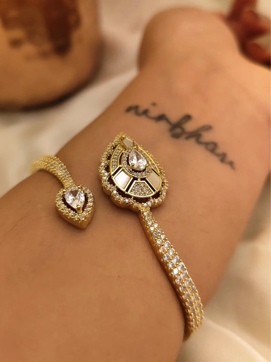 Ethnic White Stone Studded Cuff – 18K Gold Plated, 316L Stainless Steel