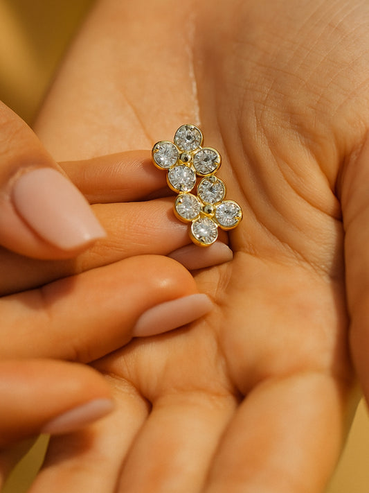 Clover Studded Gold Plated Stud Earrings – 316L Stainless Steel, Premium AD Stones
