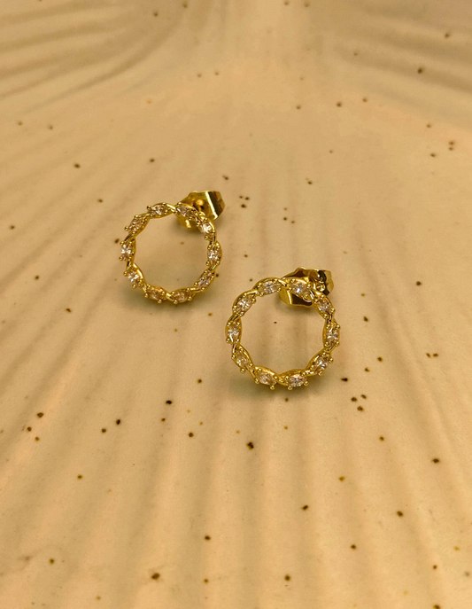 Half Floral Gold Stud Earrings with AD Stones | Everyday Wear