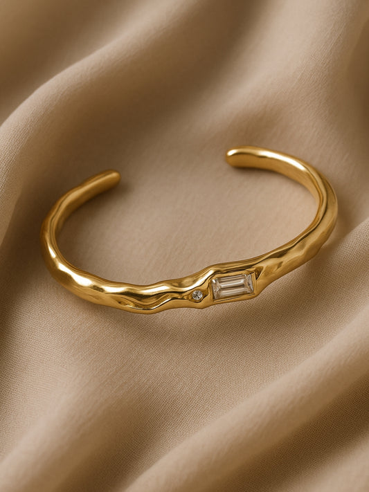 18k Gold Plated Small Stone Cuff Bracelet – Anti Tarnish & Waterproof
