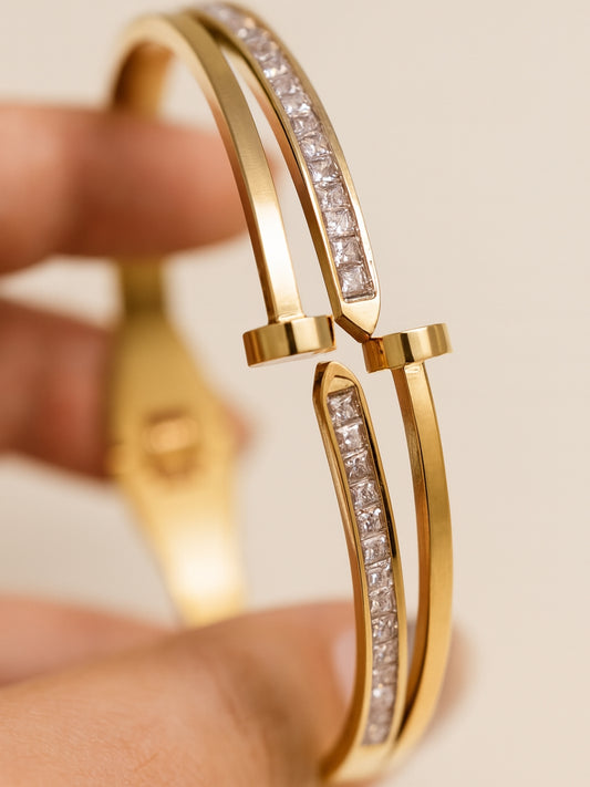 18K Gold Plated Double Line CZ Cuff Bracelet – Anti Tarnish & Waterproof