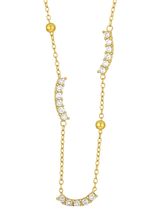 Curve Studded Bead Neckpiece – 18K Gold, CZ, Anti-Tarnish Jewelry