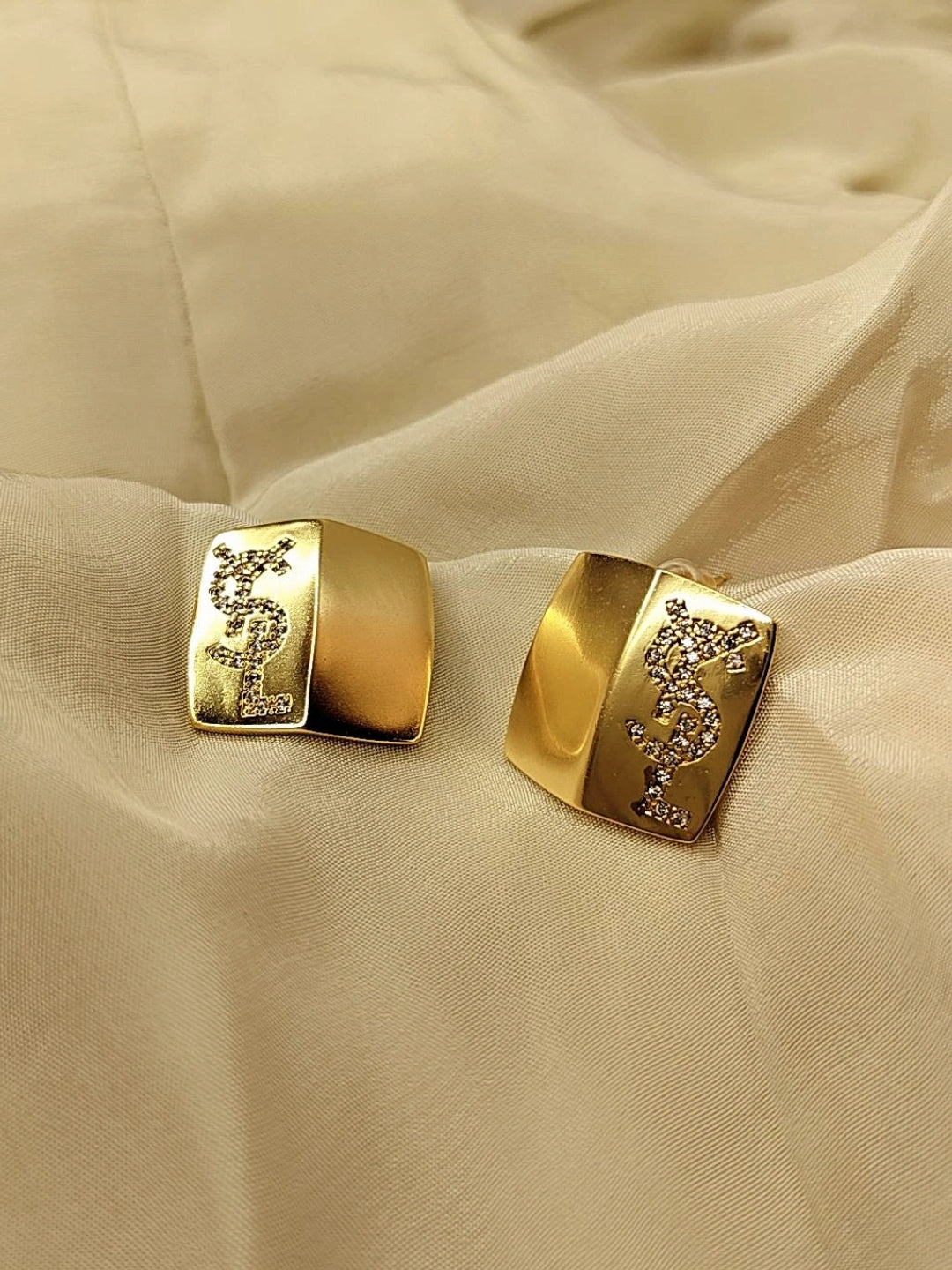 Brand Inspired Matte Gold Sculptural Stud Earrings – 18K Plated