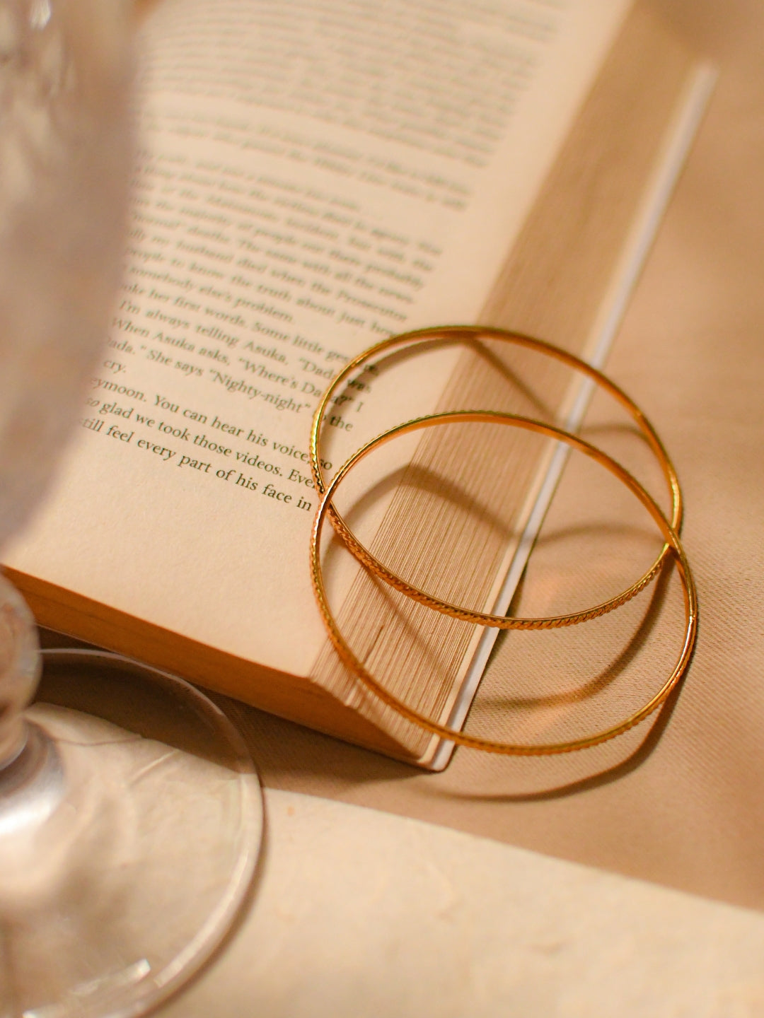 Elevate your everyday style with this timeless pair of 18K gold-plated bangles. Crafted from premium 316L stainless steel, these bangles are anti-tarnish, water-resistant, and skin-friendly—designed to offer durability without compromising on elegance.
