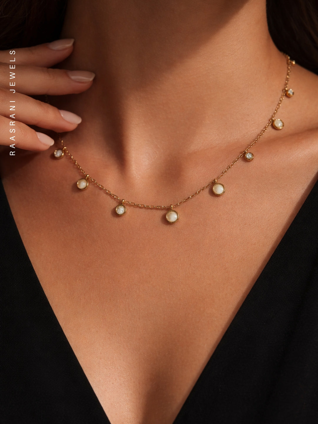 MOP & CZ Charms Gold Chain Necklace | Anti-Tarnish, Water-Resistant