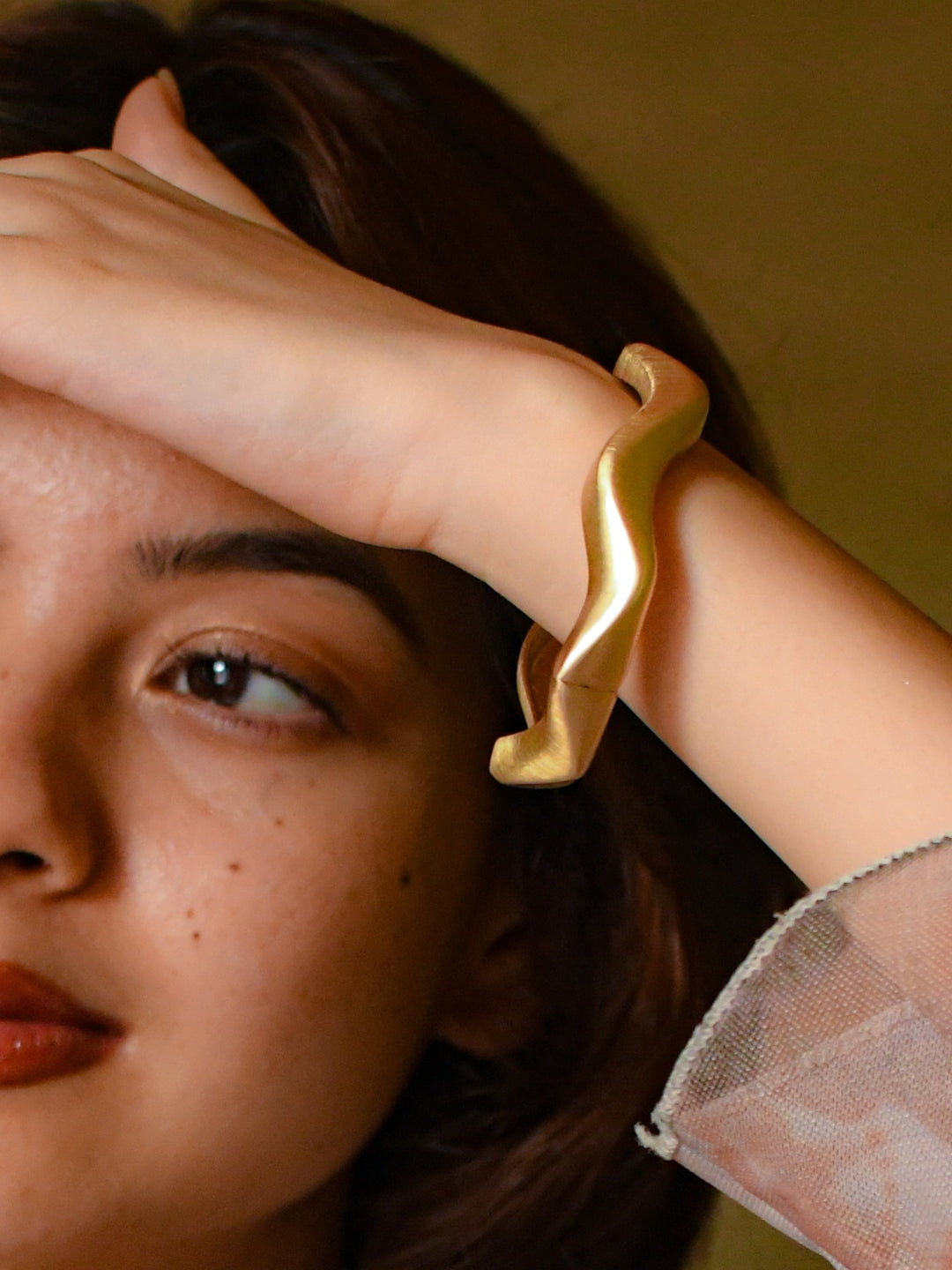 Sculpted Wave Bracelet – Matte 18K Gold Statement