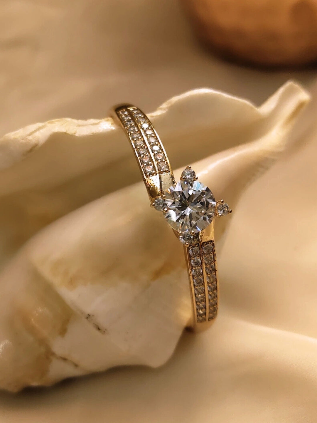 Design: Inspired by solitaire rings, elevated into a cuff form