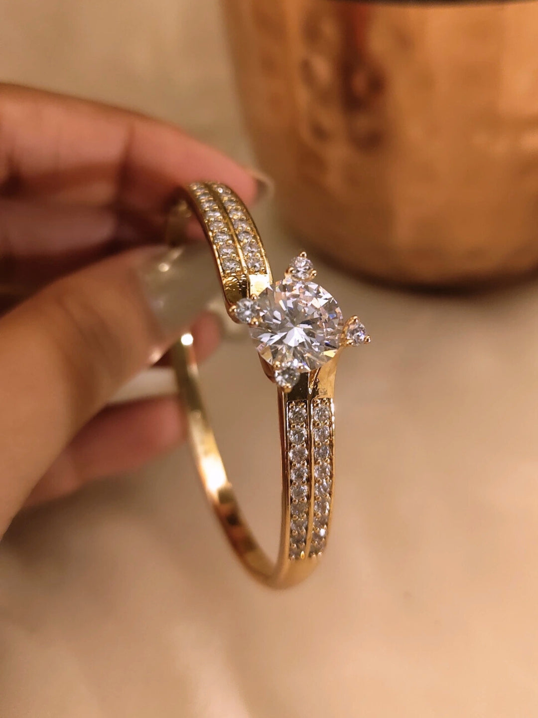 Solitaire Style RoseGold Cuff – 316L Stainless Steel, AD Stones, for Small Wrists